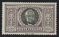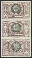Manzoni 5 L. non dentellato striscia verticale di tre esemplari con filigrana capovolta - Rara - Unito 1 L. non dentellato striscia verticale di quattro bordo di foglio superiore senza gomma - Cert. Raybaudi