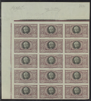 1923 - Manzoni 1 L. e 5 L. non dentellati entrambi in blocchi di quindici esemplari angolo di foglio superiore sinistro - Molto rari - Cert. Colla
