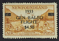 1933 - Balbo Terranova $ 4,50 / 75 c. bistro su aerogramma del 26 luglio da St. John's per Roma
