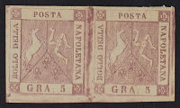1858 - 5 gr. I tavola rosa brunastro coppia orizzontale - Firme Giulio Bolaffi e A.D.
