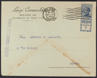 1925 - Perugina 60 c. non emesso con valori complementari su raccomandata del 17 maggio 1926 da Milano per Recanati - Firma En. D.