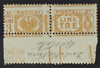 1927 - 3 L. bordo di foglio inferiore con dentellatura orizzontale fortemente spostata in alto