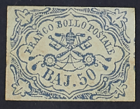 1852 - 50 baj. azzurro - Molto raro - Da esaminare - Cert. Diena