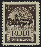1912/17 - Insieme di valori per le isole in massima parte annullati su frammento - Firma Sorani