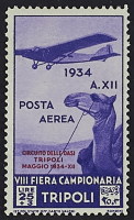 1934 - Circuito delle Oasi La serie senza i due alti valori con affrancatura complementare aerea del 14 maggio da Tripoli per città