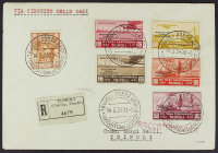 1933 - Zeppelin - La serie con valori complementari su raccomandata aerea del 29 maggio da Tripoli per Roma - Firma A.D.