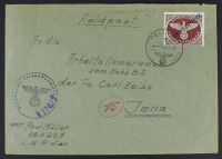 1944 - Inselpost - Soprastampa obliqua di Agram bruno rosso dent. 13 3/4 con tratto tipografico dopo la "T" su busta dell'8 gennaio 1945 da Creta per Jena - Unica nota - Cert. Cardillo