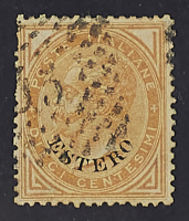 1874 - Prima emissione 10 c. ocra con angoli inferiori non modificati - Estremamente raro - Da esaminare - Cert. Raybaudi