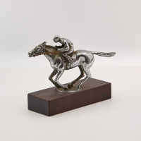 LEJEUNE HORSE AND JOCKEY CHROME CAR MASCOT 50s