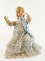 RARE table automaton, made of composite material, fabric, felt. The spring-driven mechanism, operated by a side key (included), animates the head and arm, creating the illusion of speech or lively gesticulation. No tested.