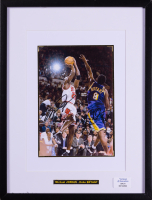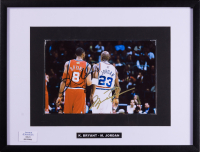 Colour photograph (23x15.5 cm), autographed by Kobe Bryant and Michael Jordan, relating to a Lakers vs Bulls match in the late 1990s.