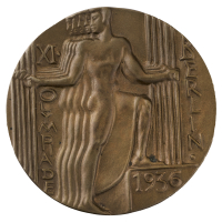 Commemorative medal, in gilded bronze, minted to celebrate the participation of Italian athletes in the 1936 Berlin Olympics. In original box.