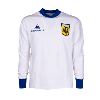 On the front: flocked technical sponsor logo and sewn-on Argentina national team crest.