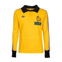 On the front: technical sponsor logo sewn on and French national soccer team crest applied.