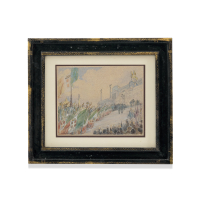 Watercolour on cardboard, one depicting the Altare della Patria in Rome, the other depicting a married couple descending the steps of a church, both signed recto.