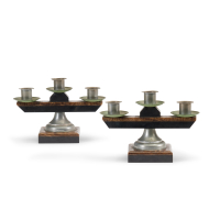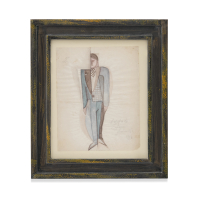 Sepia ink on paper, one depicting a still life with objects and signed on the front lower left, the other a futurist landscape, signed and bearing a dated inscription, partially legible on the front lower right.