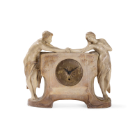 Patinated terracotta, depicting male and female figures on the sides of the dial. Signed Simon on the lower right and bearing the inscription Amicitia vincit horas.