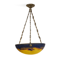 Varnished brass, metal, plastic and fabric, fluted shaft, decorated with floral and geometric motifs, on a tripod base with feral feet.
