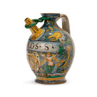 Ceramic with a metal stem in the shape of a dancer, Parrot & Company stamp on the reverse.