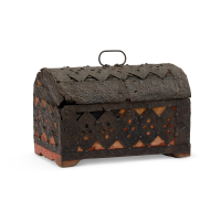 Embossed and engraved metal with openwork decoration and fabric.