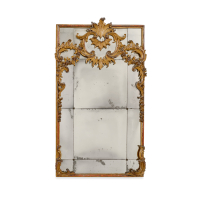 Wear and tear, damage, breaks, restoration, minimal traces of gilding, oxidation to the mirrors.