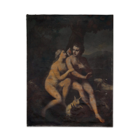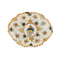 Majolica, polychrome Callot-style figures and ruins decoration.