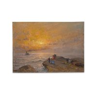 Oil on board, signed and dated lower right recto, paper label with title and author and label “Antichità Palbert, Torino” on the reverse.