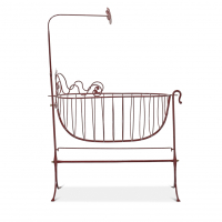 Burgundy painted wrought iron, shaped, with curtain rod ending in a flower.