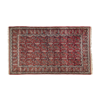 Polychrome decoration with Paisley motifs on burgundy ground.