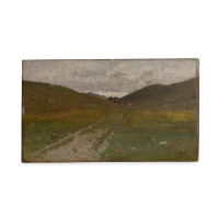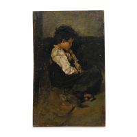 Oil on board, signed and dated lower recto; signed and dedicated 'a sua affezionata allieva Giuseppina Speirassi' on the reverse.