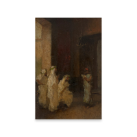 Brown patina bronze, signed on the reverse, on a porphyry base.