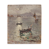 Oil on plywood, signed and dated lower left recto, on the reverse stamp 'Galleria La Barcaccia, Naples'.