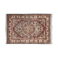 Polychrome decoration with floral motifs on grey and burgundy ground.