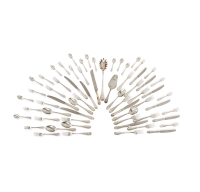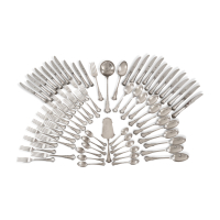 Comprising twelve forks, twelve knives, twelve large spoons, twelve dessert forks and twelve dessert knives, two serving spoons, a cake server and a ladle.