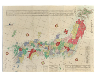 Polychrome print, title at top right (大日本海陸全圖, Dai Nihon kairiku zenzu), the archipelago depicted with meticulous toponymic detail a few years before the Meiji Restoration.