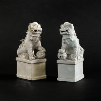 'Blue and white' porcelain decorated with floral motifs, the lid with a Buddhist lion handle.