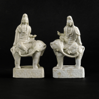 Dehua porcelain ('blanc de chine'), the two deities depicted seated.