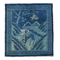 The motif of the deer and the Manchurian crane, with its typical red crest, is a 'classic' in Baotou production (L. Larsson jr, Carpets from China Xinjiang & Tibet, London 1988, p. 71, fig. 72 for a similar