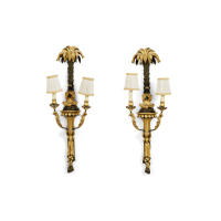 Carved, gilt and partially ebonised wood and metal, with two lights, embellished with a seated asian figure and surmounted by a stylized palm motif and richly decorated with phitomorphic motifs, in the Louis XVI style.