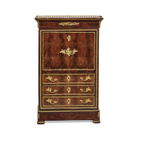 Mahogany feather, with gilt-bronze fittings, with a fall-front and three drawers, upper top with brass openwork decoration.