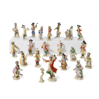Polychrome decoration porcelain, on a model by Joaquin Kandler, complete with 21 pieces and a music stand.