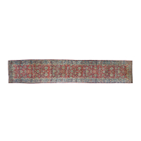 Polychrome decoration with floral motifs on a burgundy and pale blue ground.