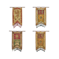 Heraldic banners in silk, gold thread and trimmings.