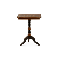Walnut, with precious woods veneered top, baluster shaft, tripod.