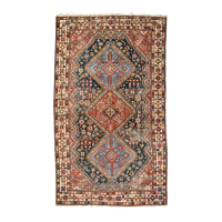 Polychrome decoration with geometric motifs on a blue and ochre ground.