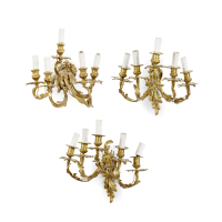 Gilt-metal, with five lights, the arms leafy scrolls-shaped.