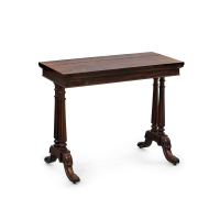 Walnut, folding table with carved and turned legs with double fluted columns, on a scrolled base with casters.