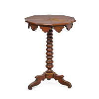 Cherry wood, octagonal, with gadrooned band, turned shaft, tripod.
