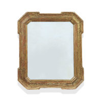 Damage to the gilding, mirror replaced.