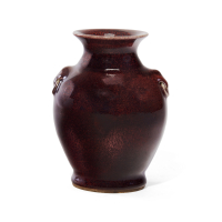Porcelain with red spotted glaze, the shoulder with two small lion's head handles.